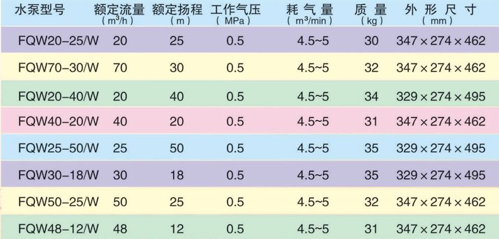 特點:FQW/W型(原FWQB型)礦用風動潛水泵土突破了以往舊的設計思想,采用風動渦輪傳動,壓縮空氣為動力的新型潛水泵,克服了老式風泵噪音大、耗風量大、效率低的特點。廣泛適用于礦山的井巷開拓、豎井井筒施工和地下峒室的排水施工